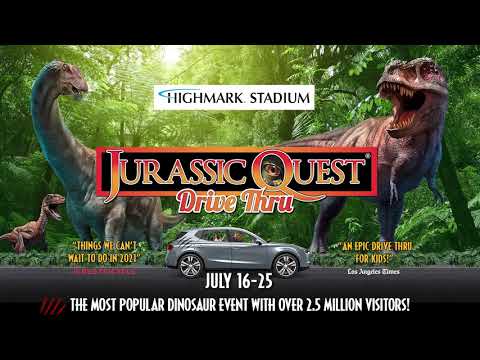 Jurassic Quest with Moving Dinosaurs at Bills Stadium on July 25 2021 from 9am to 8pm. Jurassic Quest with Moving Dinosaurs at Bills Stadium from July 25 2021. It is a drive-thru featuring over 70 moving and roaring dinosaurs including a 50 foot Megalodon.